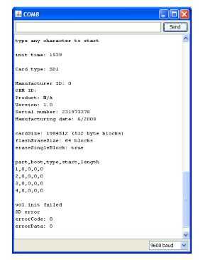 En el IDE de Arduino, abrir archivo -> ejemplos -> SD -> CardInfo. El bosquejo le dirá si su tarjeta microSD está funcionando correctamente, así como proporcionando una lista de todos los archivos en la tarjeta.
