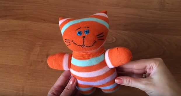 Gato de calcetín DIY. Regalo hecho a mano para niños (10 / 10 paso)