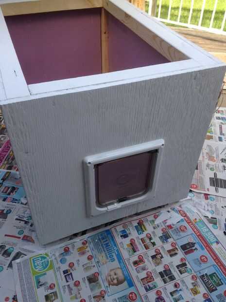 A continuación instalamos las puertas dos cat. La razón hay que dos está principalmente para la seguridad del gato. Si entra un intruso (mapache), la Fig. tendrá una manera de escapar. También decidí poner uno en el lado en lugar de la parte posterior para evitar que un proyecto. Estas puertas también tienen aletas transparentes, así que conseguirá algo de luz.