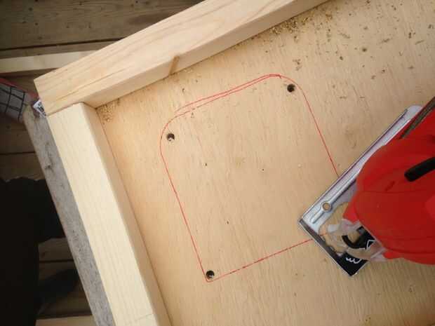 Una vez que los paneles fueron enmarcados para arriba, trazó la puerta del gato para hacer el corte necesario salidas