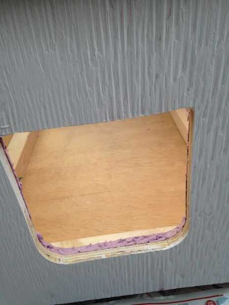 Después de colocar los paneles de aislamiento dentro de la casa del gato, se utilizó el corte salidas como guía para cortar el aislamiento. También hemos añadido un pedazo a la azotea para hacer mantener tanto calor como sea posible.