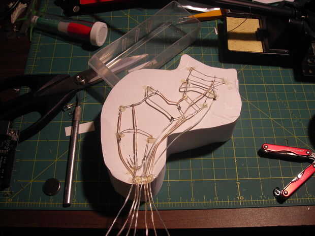 Al soldar todos los LEDs, conectar todos los ánodos (positivos) y conectarlo al arduino + 5V.