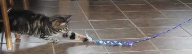 Fling-ama-String es un gran juguete de gato poco que entretendrá a kitty incluso más lento. Un excelente juguete, pero la corriente suministrada por la batería interna con 3 baterías del AA se agota muy rápidamente. El gadget tiene un interruptor on-