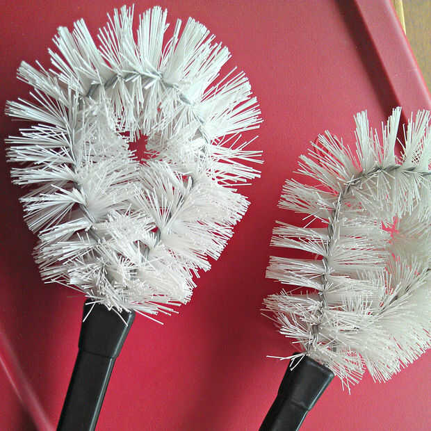Supongo que podría ser realmente barato y reciclar algunos viejos cepillos de aseo, pero me decidí a derroche y comprar dos cepillos nuevos en una tienda de descuento de $1,50. Mi tapa era de una caja de plástico desechada que ya tuve.