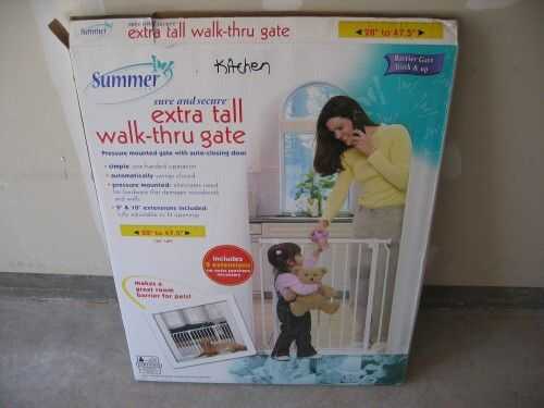 Ya teníamos la puerta extra alto a pie-por el bebé que se puede obtener en Babies 'R' nosotros. Hemos tenido en nuestra casa antigua, donde se utilizó para el mismo propósito - pero allí, el gato fue capaz de conseguir alrededor de la puerta a través de las barras del pasamano. Aquí en nuestra nueva casa, las barras están demasiado juntos, y no quepa el gato.