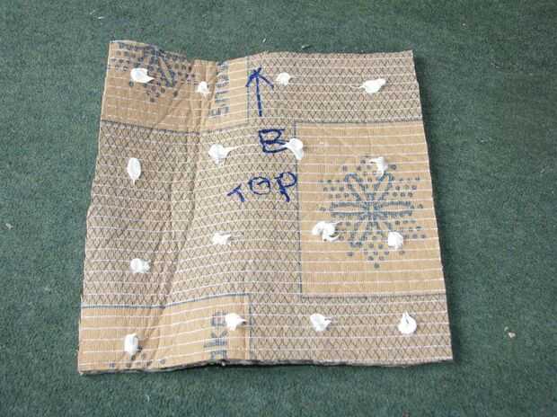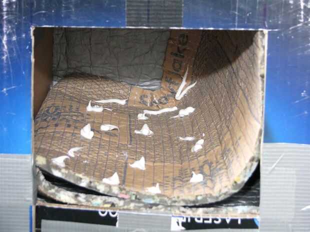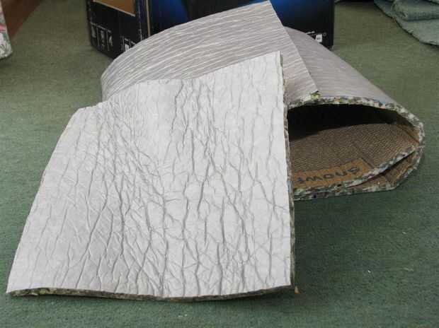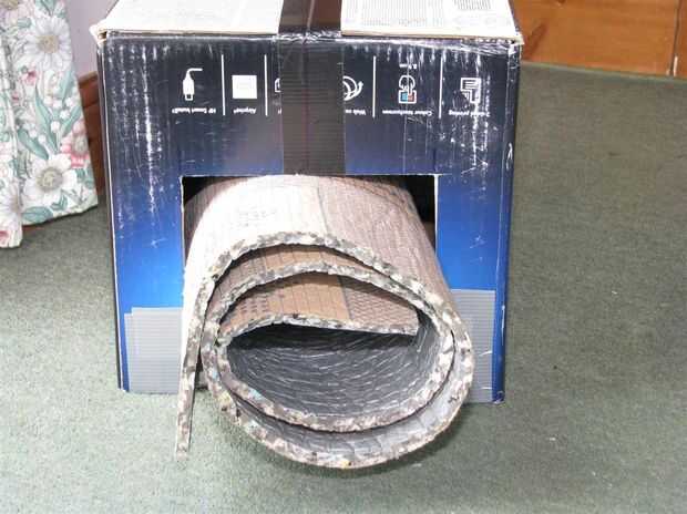 Cortar una tira larga de arpillera para el resto del interior. La arpillera que utilicé fue 4'6 "ancho que era suficiente con una capa doble para el suelo. Enrollar la tira larga (hacia fuera lado rugoso) y alimentación a través de la entrada. Desenrolle todo el interior Verifique el ajuste entonces aplicar el adhesivo y pegar cada lado alternadamente. No presione el subsuelo duro en las esquinas, pero deje que se forme una curva suave para reducir la 'atenúe'.