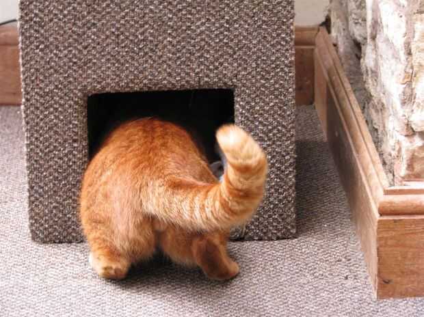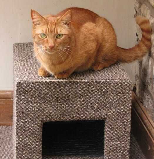 Actualización - Ozzy negado usar este para su propósito, aun cuando un agujero en el otro extremo para convertirlo en un túnel de gato, aunque ahora usa los lados como un poste de rasguño y le encanta sentarse en la parte superior y se lave o encuesta el jardín a través de las ventanas.
