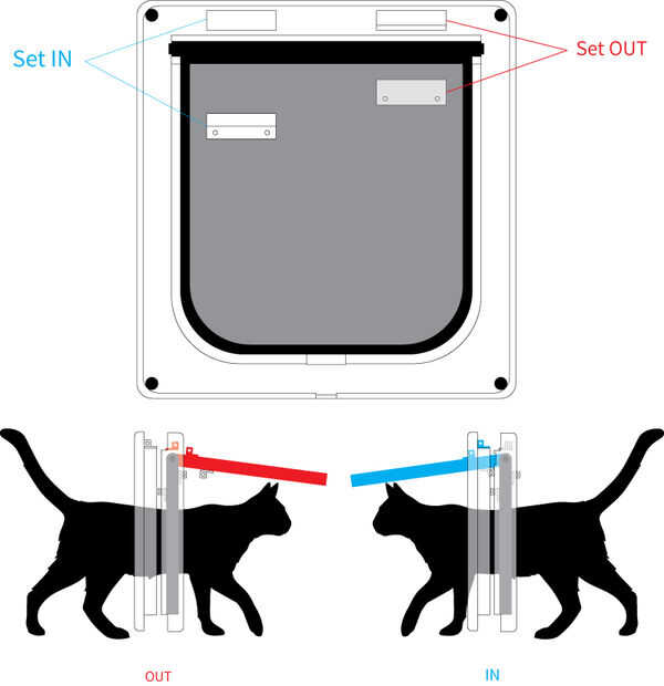 Necesitamos utilizar dos conjuntos de interruptores magnéticos para capturar el movimiento de la aleta de la puerta en cada dirección. Esto hace fácil de rastrear la dirección de la puerta aleta oscilaciones y, por tanto, determinar si el gato ha ido adentro o hacia afuera.