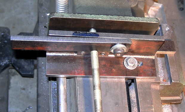 Ahora examinaremos más de cerca la parte movible de la quijada del proyecto. La quijada movible que viene con la Sierra es una broma. Pensé en soldar una tuerca en, o algo, pero me decidí a sustituirla por algo más sustancial. No hay ninguna soldadura en este proyecto a todos por el camino. Todo simplemente se atornilla juntos.
