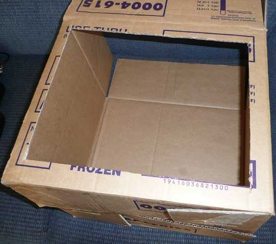 Lo primero es agarrar la caja y cortar un rectángulo/cuadrado al lado. Se trata de donde desea que la ventana que. Asegúrese de que guarda el pedazo que corte intacto en caso de que necesite para algo más adelante - un complemento, tal vez.