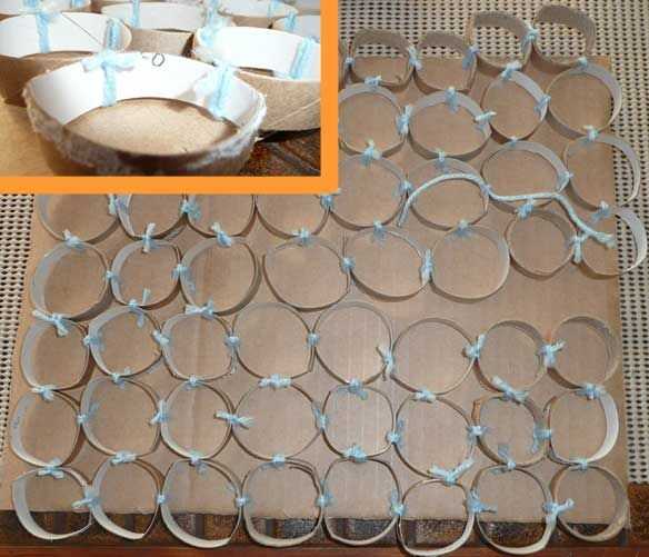 Una vez que tienes un montón de los anillos, Inicio corte de piezas de cuerda de unos 15cm de largo. Usted necesitará duplicar la picadura y atar cada anillo a la siguiente para formar una malla de cuadrícula. Todos se enlazarán juntos por la cuerda o si usted decide usar cinta adhesiva, atarlos juntos por la cinta. He atado horizontal y vertical uno al otro. Si tienes un gato fuerte grande, querrá atar diagonal entre sí como para hacer el acoplamiento más fuerte. Me puede la malla de la imagen será menor, aunque.