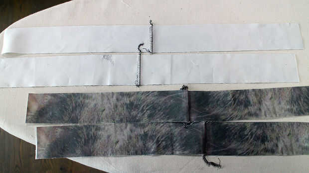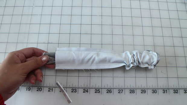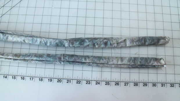 -Con los lados impresos uno frente al otro, coser ambas empuñaduras a lo largo de la longitud para formar dos tubos