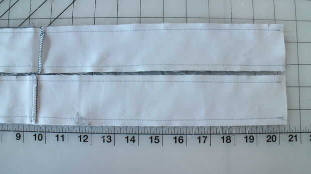 -Coser juntos dos trozos de mango a lo largo de los bordes más cortos y presione con el hierro, repetir para que tengas dos manijas dos veces la longitud de longitudes impresos originales