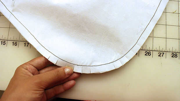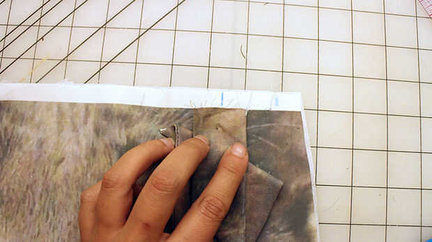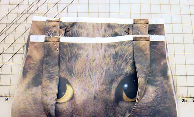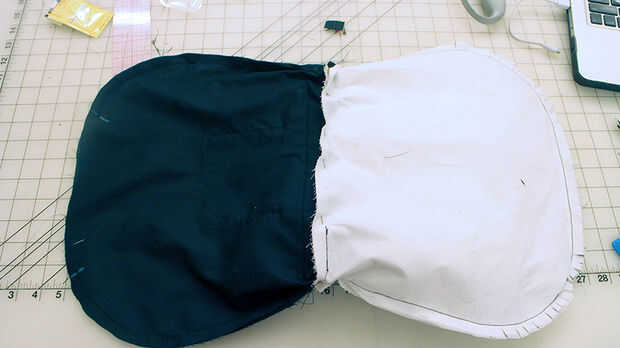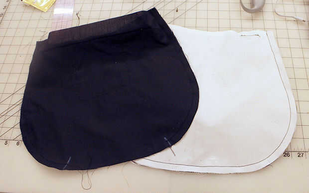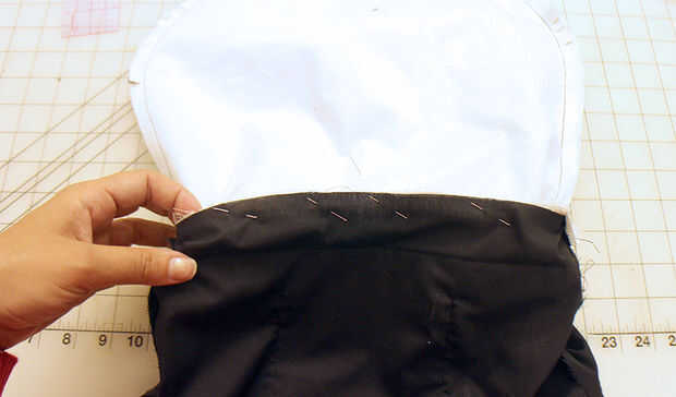 -Pin juntos y marca unos 6" en la parte inferior de las capas del forro, coser desde el borde superior a las marcas a cada lado