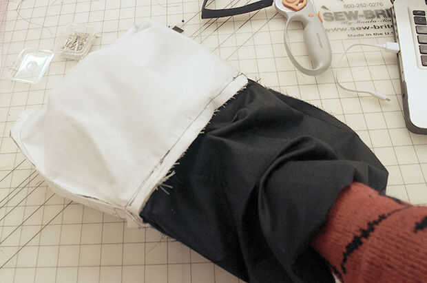-Para coser la abertura en el forro, doble 1/2" SA y puntada. Puede dar puntada, aunque me parece que utilizar la máquina crea una conexión más fuerte.