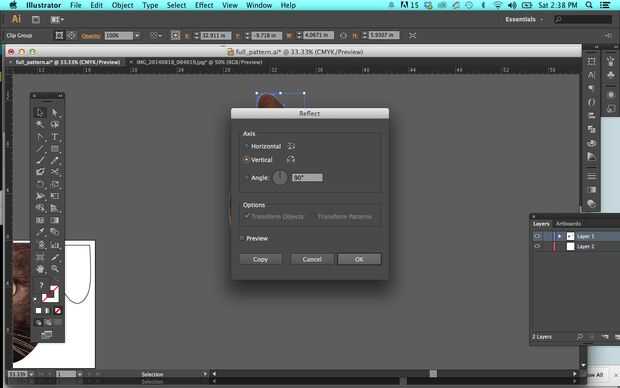 -Crear máscara de recorte de la misma manera como hiciste la cara. Copiar, pegar e ir a objeto > Transformar > reflejar y elegir el plano vertical. Ahora tienes dos orejas!
