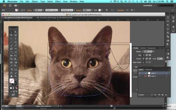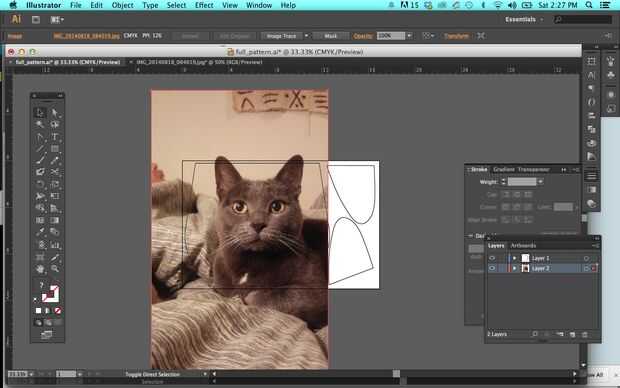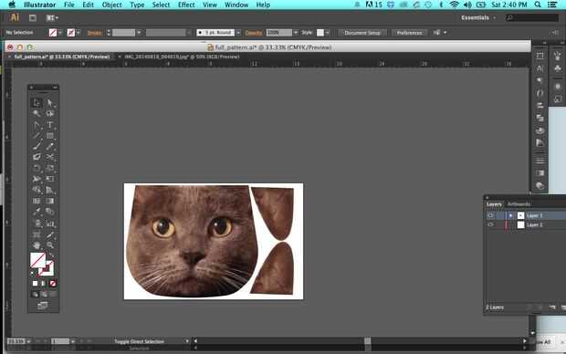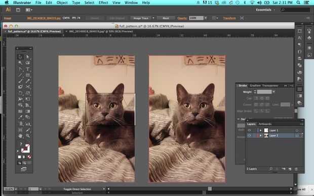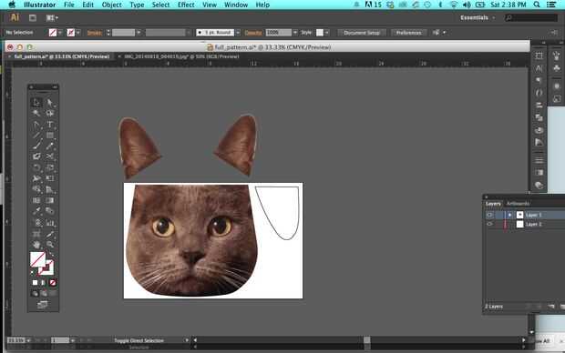 -Elegir y abrir tu foto gato favorito en una capa independiente, una foto en la que es cabeza el gato mirando directamente a la cámara funcionará mejor para el patrón incluido.