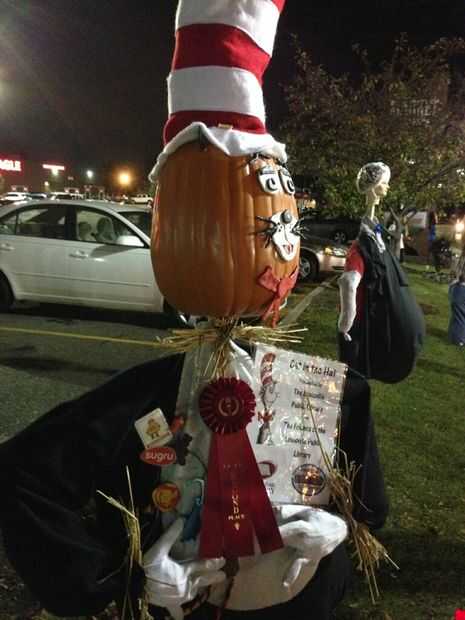 Entramos en un concurso de espantapájaros y puesto que somos una biblioteca, el Espantapájaros era literaria con temática. Hicimos el gato en el sombrero! Y obtuvo el segundo premio! Él es un espantapájaros bastante tradicional, pero usamos Sugru para formar sus rasgos faciales. Resultaron grandes y duraron a través de los elementos!