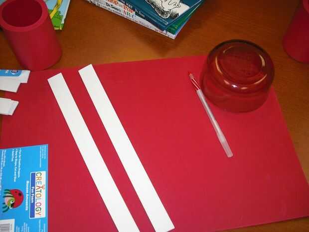 Corte la blanca espuma pegajosa espalda lo largo en tiras de 1 pulgada aproximadamente. Sólo necesita dos para cada sombrero.