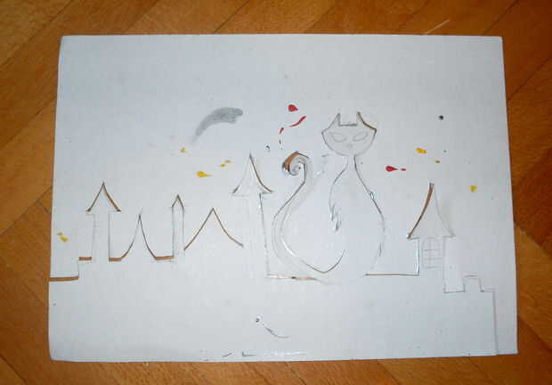 Después de dibujar las líneas básicas usando su patrón de cartón, retire el cartón con cuidado y los detalles de pintura a mano alzada.