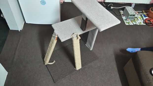 Con la ayuda de tablas viejas, pedazos de alfombra y cuerda de 20 metros y un poco de imaginación, cualquiera puede hacer una gran zona de juegos para su gato :)