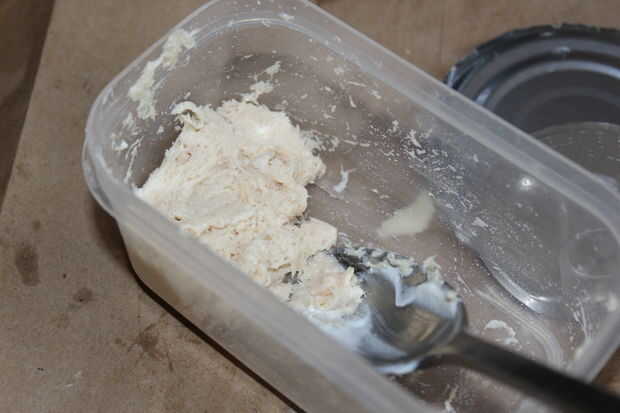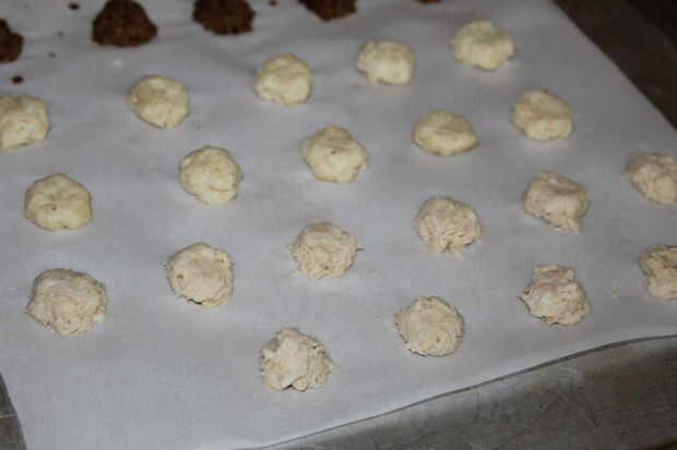 Mezclar todo y amasar pequeñas cantidades en los dedos.
