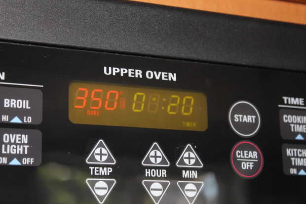 Poner el horno en 350 y ajustar un temporizador de 20 minutos.