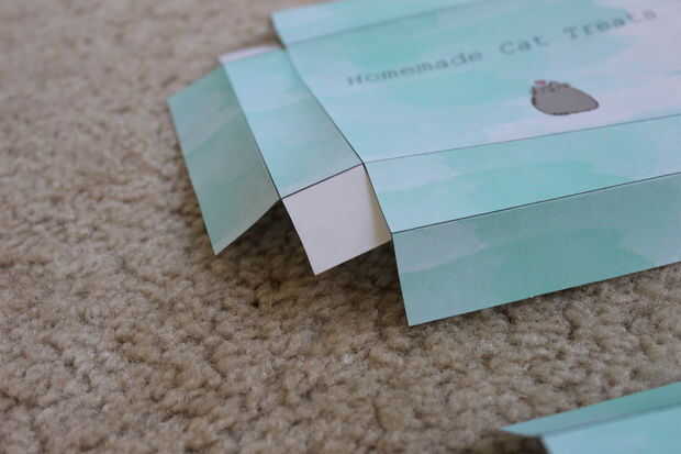 Las lengüetas en el borde de la caja del pegamento y doblar por los laterales.