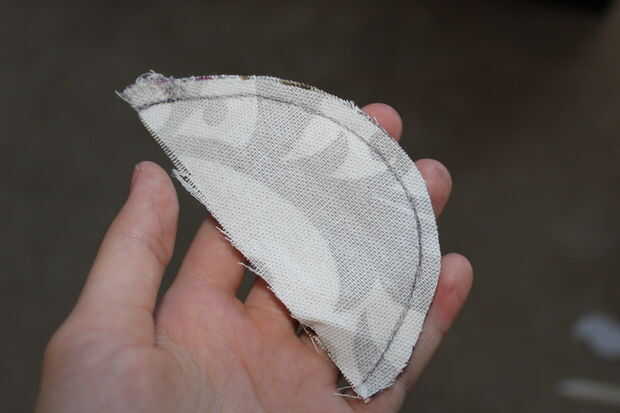 Cosa a fabric A con costura de 1/4" hasta el fondo de telas B. dejar un orificio de 1" en la parte posterior del cuerpo del ratón.