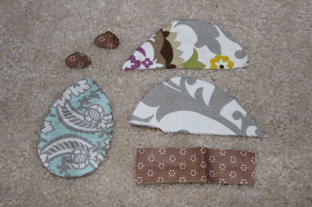 Trazar las plantillas sobre la tela. Use fabric A de base, B la tela por los lados y tela C para las orejas y la cola.