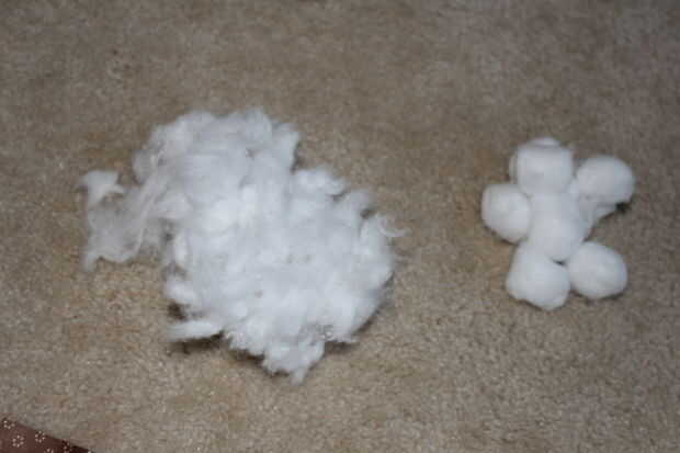 Tomar bolas de algodón y les destrozar para que tengas una gran pila de pelusa.