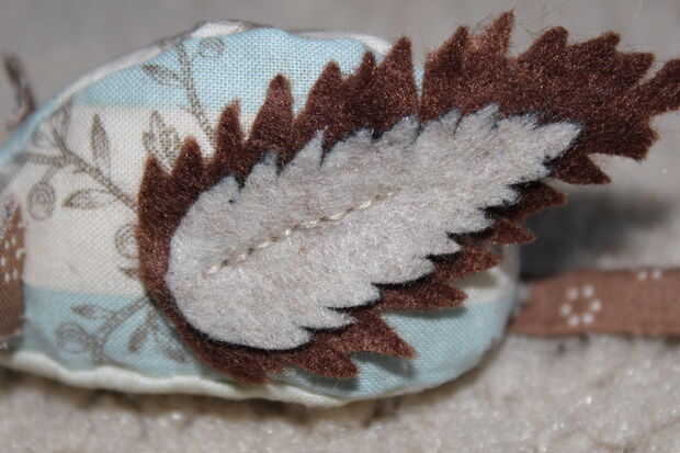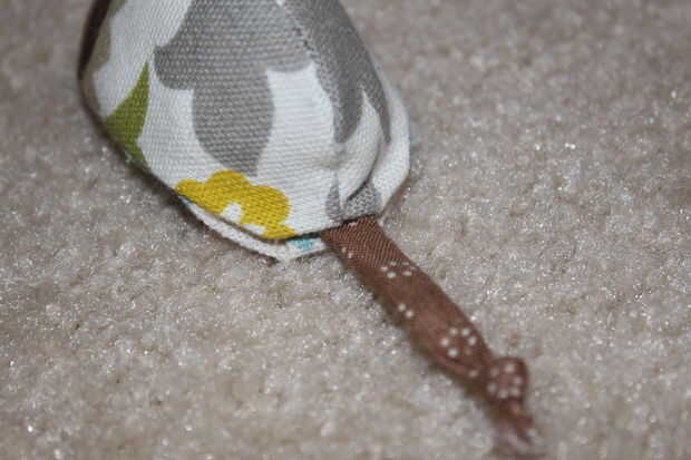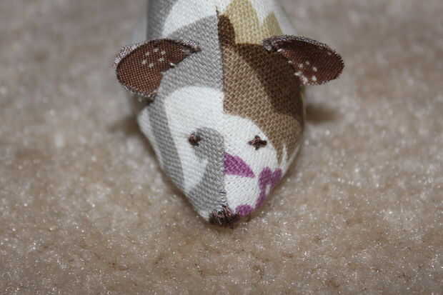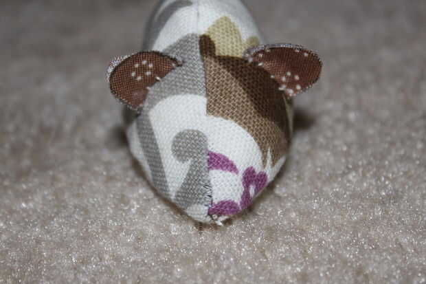 Doble a tela C para los oídos por la mitad y coser la parte inferior al frente del ratón.