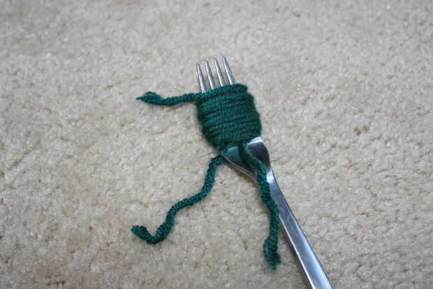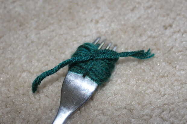 Comenzar a envolver la lana alrededor de la horquilla para tener varias capas.