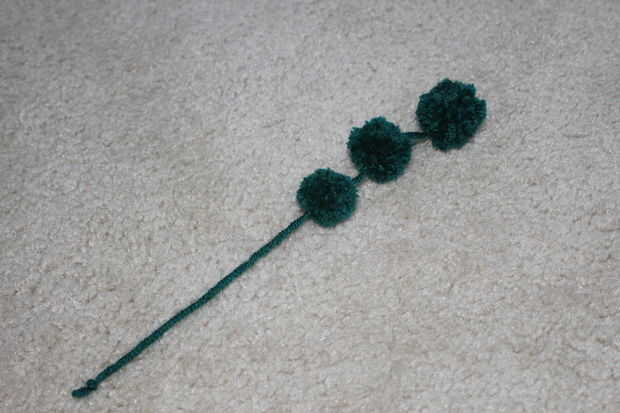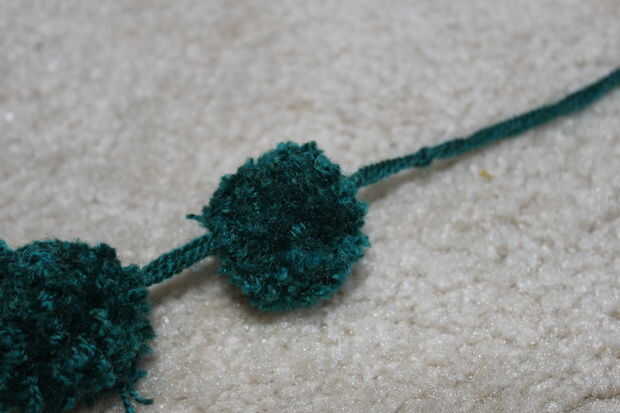 Nudo de la parte superior de aquélla y repita con el último pom pom.