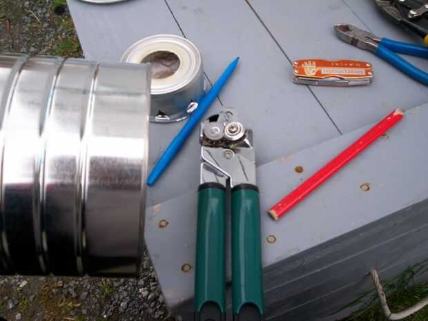 Paso 1: Reunir los materialesMateriales:MarcadorReglaTachuelaAgujaMango de cuchillo del exactoExacto o cuchillaLibro (s)Perforadora de papelDos de la misma clase de latas de refrescoDip de frijoles o alimentos gato puede la placa de la cartillaPaso 2
