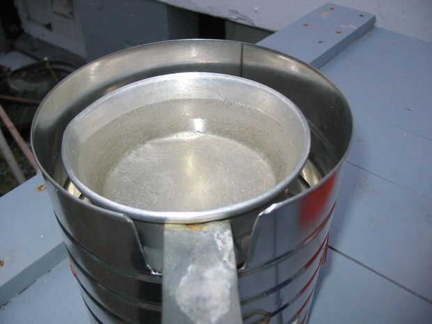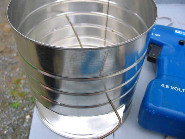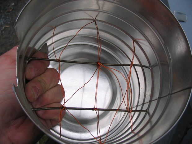 en la primera que hice me 8 agujeros perforados e hizo una simple parrilla de alambre de colgador de ropa.