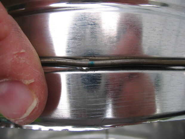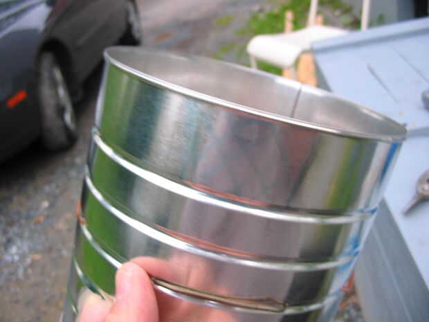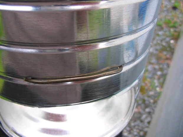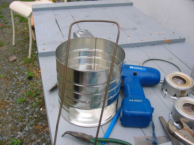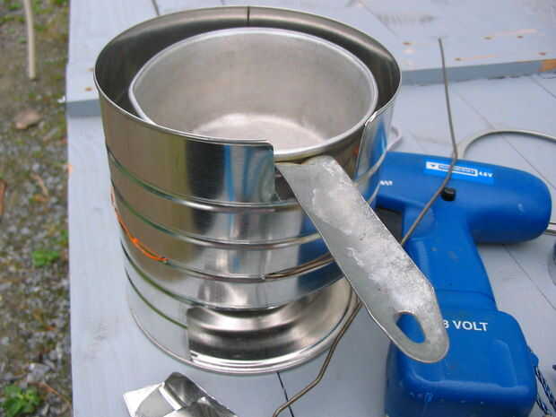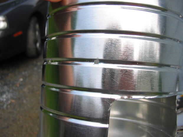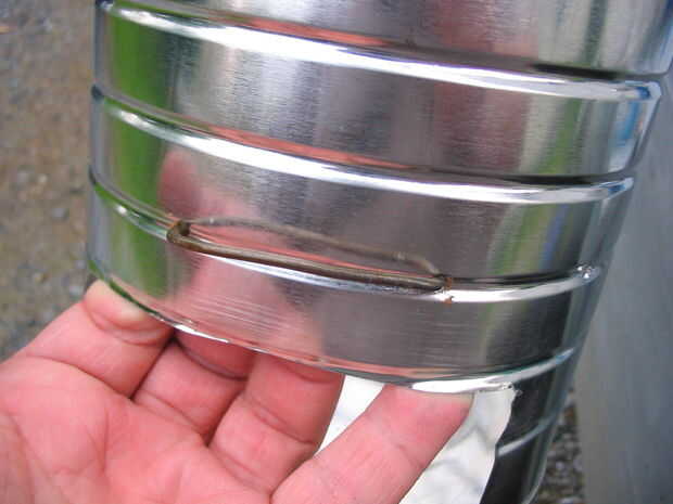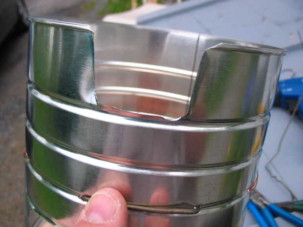 ahora medir cuánto es su manija del pote del borde de la y corte una sección de la can para hacer espacio para él. hacer un ajuste de prueba y ajuste si es necesario.