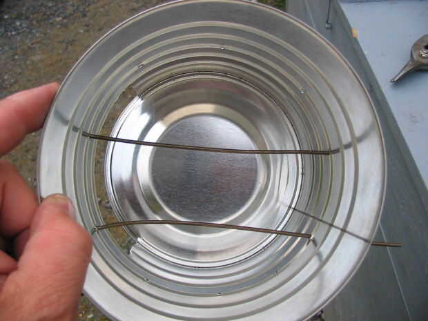 doble sobre el lado de la lata y marca donde la curva siguiente tiene que sacar los cables y la curva en la marca hasta que la pierna más allá de la curva quede alineada con la primera pierna.
