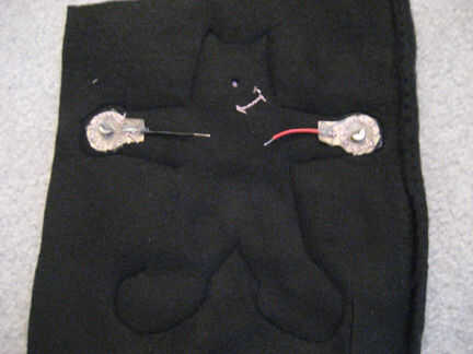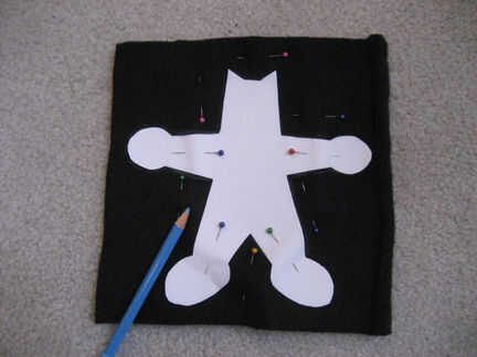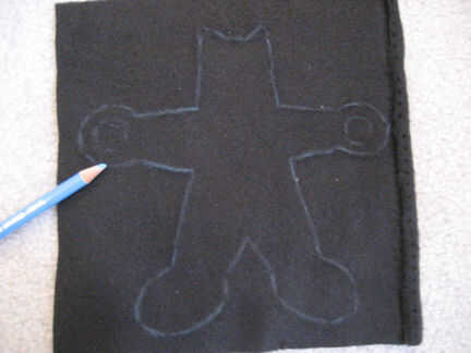 Cortar los agujeros para las patas. Luego desde la parte posterior, coser las patas conductoras que hiciste en el paso anterior.