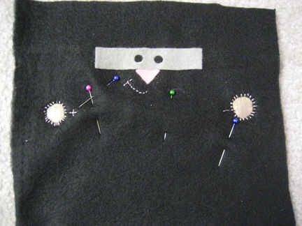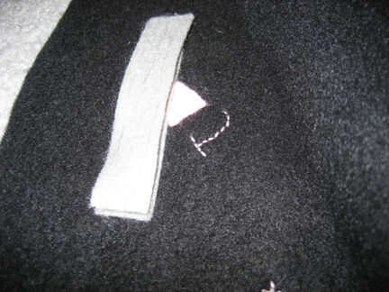 Ahora arrastrar a la máquina de coser. Cortar una pequeña tira de fieltro gris para crear la parte de atrás de la máscara.