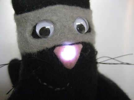 Agregando pequeños detalles realmente ayudarán. Agregar bigotes con hilo negro. Con hilo rosa, coser en un símbolo "+" en la pata positiva. Pegamento en unos ojos de googlee. Por último, pequeño cortado a pequeños triángulos de la rosa fieltro y había pegado a los oídos.