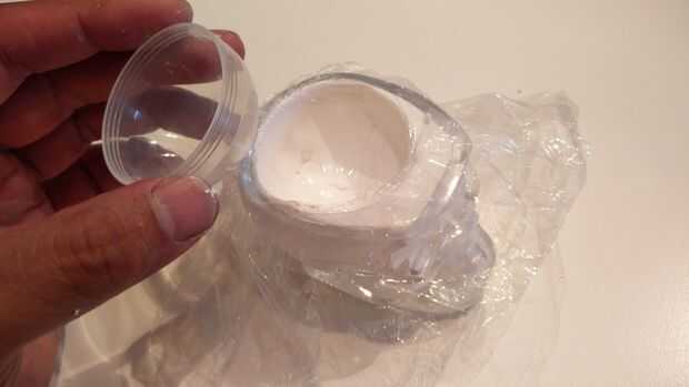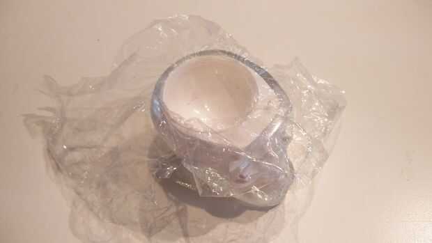 Tiré el envoltorio plástico abierto y suavemente hecho estallar la cáscara. Entonces, descartada la envoltura plástica y se quedó con una forma de la taza perfecta.