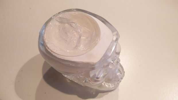 Cuando llegué cerca de la forma del tazón de fuente he querido, he pulsado en la carcasa de plástico envuelta. Luego presiona el Fimo alrededor de él y alisar lo mejor que pude.