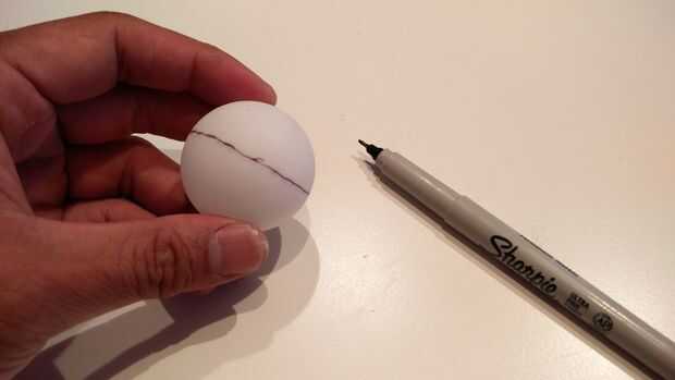 1. Trace una línea fina por el centro de la bola - usted puede ver la costura si te aferras a la luz.