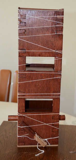 El pegamento de madera utilicé llegó a ser transparente cuando se seca, había leído la etiqueta o probado, hubiera sido más generoso... Se seca en 15 minutos y tienes 5 minutos para ajustar cosas. Aunque es cómodo, puesto que la torre es relativamente grande y hay un número de piezas que prefirió montar en dos partes (sin considerar la base).