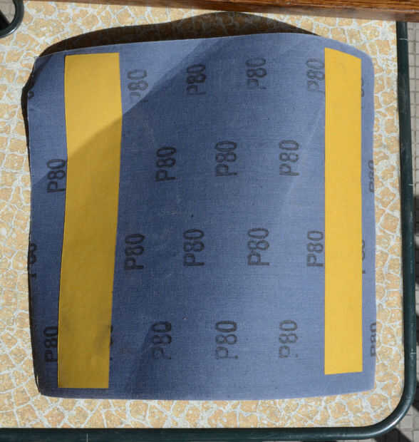 Un pequeño Consejo para lijar (un poco más) recto: pegar una hoja de papel de lija con cinta de doble cara sobre una superficie plana (por ejemplo una tabla).