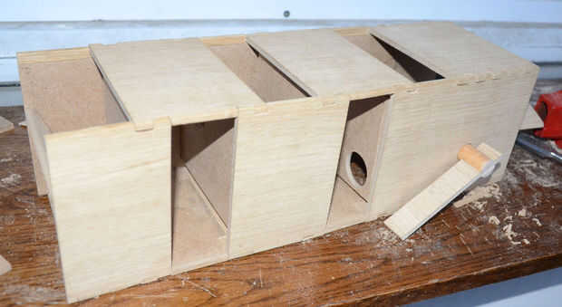 Como ya mencioné es mejor prueba de ensamblado parciales durante todo el trabajo. Ahora es el momento para probar el montaje completo y pequeños ajustes. Esperemos que todo salga bien. Tuve problemas con la parte frontal superior, que encajaría correctamente en ambos lados pero no recta del todo. Como tuve ya no hay recambios, tuve que ajustar haciendo las uniones más grandes, por lo que tiene una mierda mira, pero de todos modos.