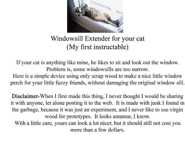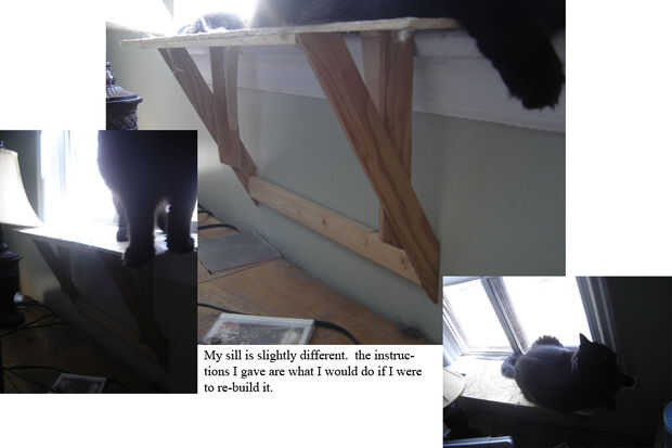 Tengo dos gatos. Hay exactamente una ventana en la planta baja que está orientada al sur. Lo hace irresistible para ellos, y también es el lugar donde quiero que mi mesa de la cocina. Aquí está mi solución, una plataforma que cuelga de la cornisa de