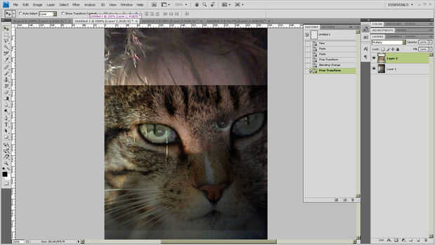 Ahora, en el menú superior: Edit -> Free Transform. Ahora tendrás una caja alrededor de su imagen de gato.