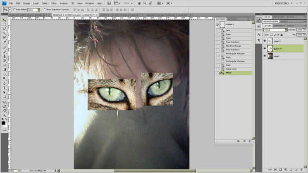 Presione m para seleccionar la herramienta marquee. Utilice esta herramienta para dibujar una caja grande alrededor de uno de los gatos de ojos.